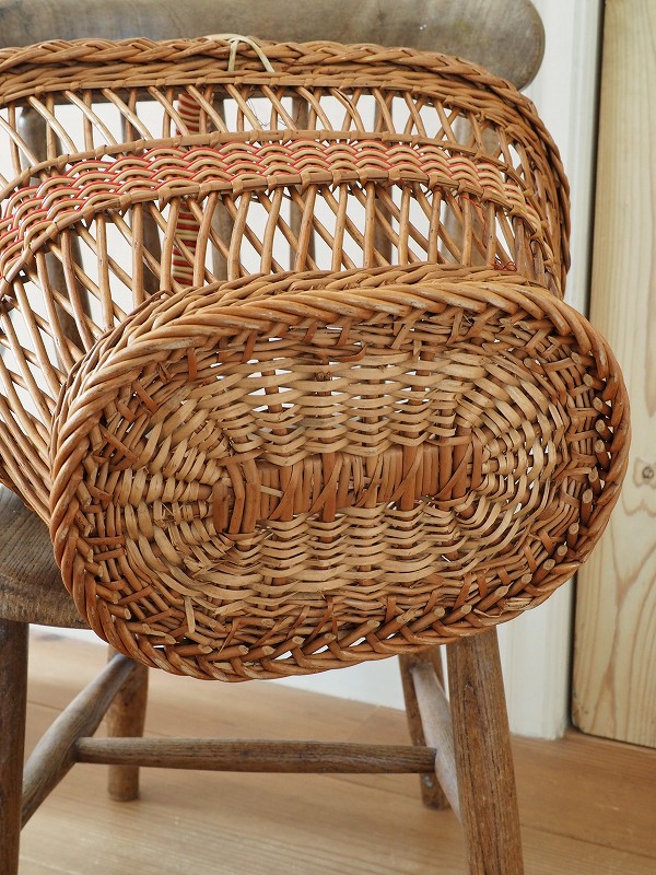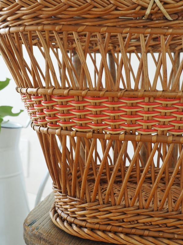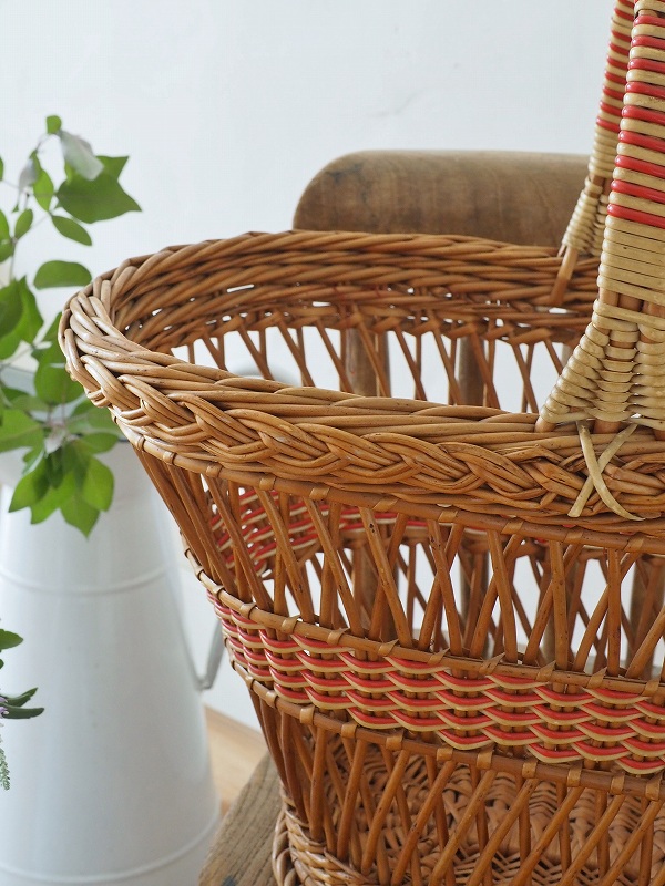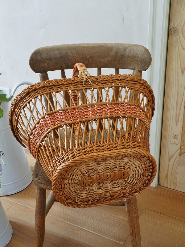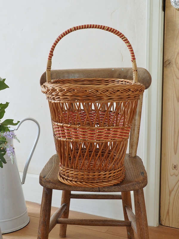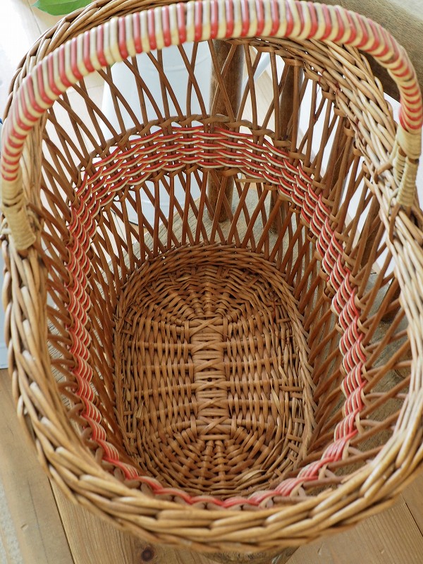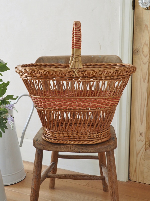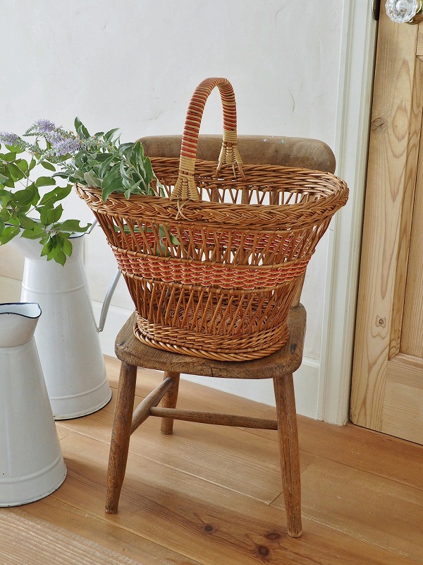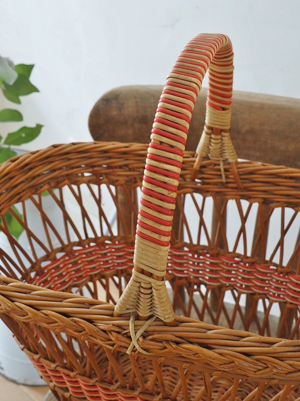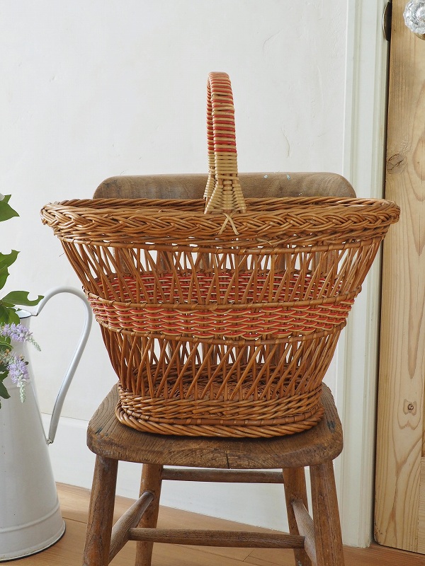 フランスのパニエ(バスケット)です。籐の編み込みとデザインがかわいいです。比較的大き目で底もしっかりしてますので、玄関でスリッパを入れていただいたり、お出かけに使っていただいたりと、色々なシーンでかわいく活躍してくれます。