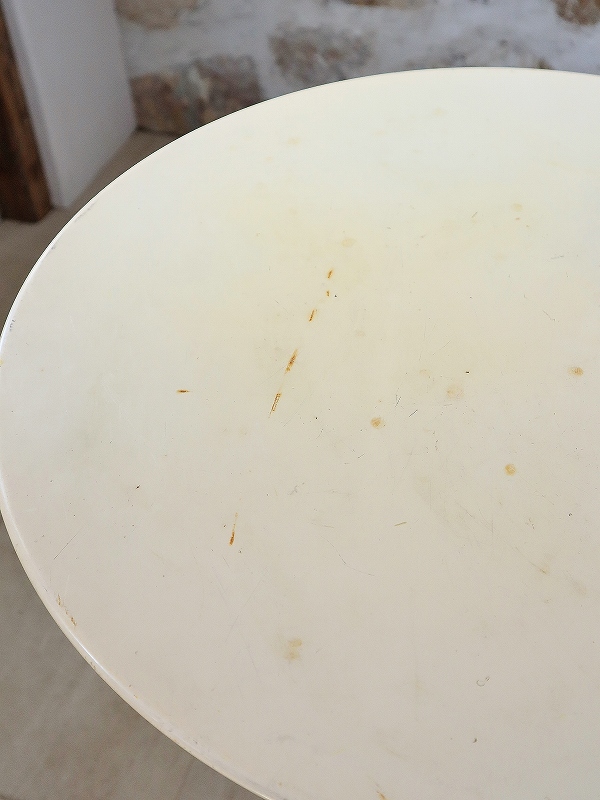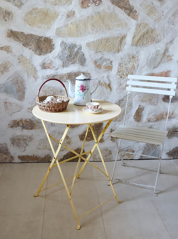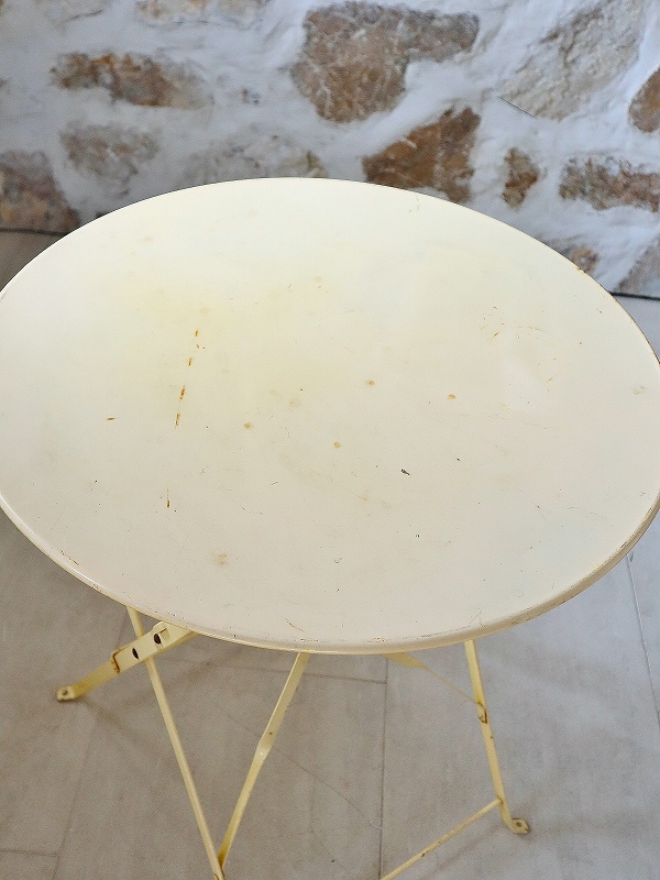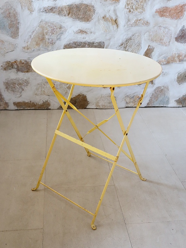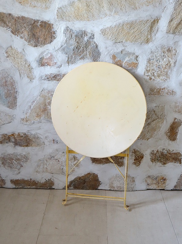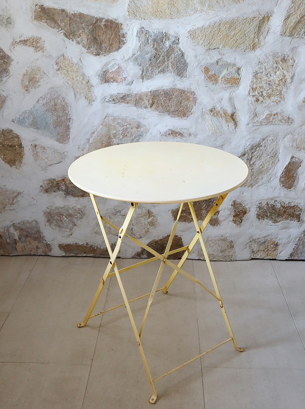 フランスのアイアン製のテーブルです。アイアンテーブルとしては、派手過ぎず、シンプル過ぎず、デザインが洗練されていて、折りたたむこともできますので、サブテーブルとして、内外どちらでも活躍してくれると思います。色もクリーム色でかわいいです。