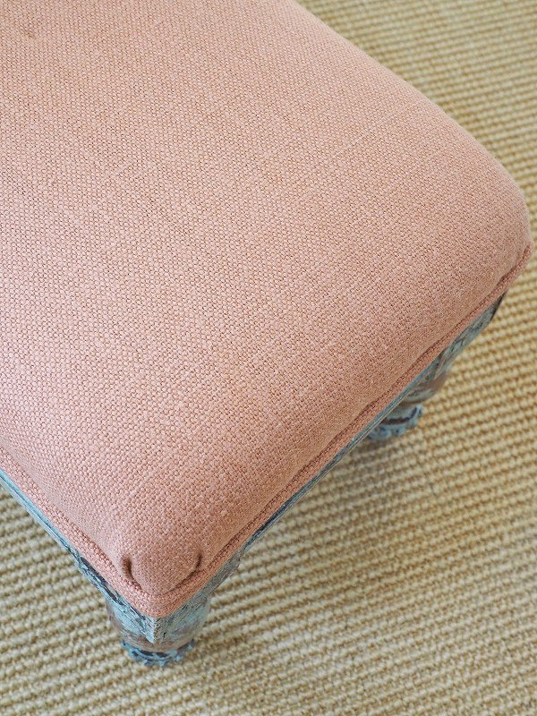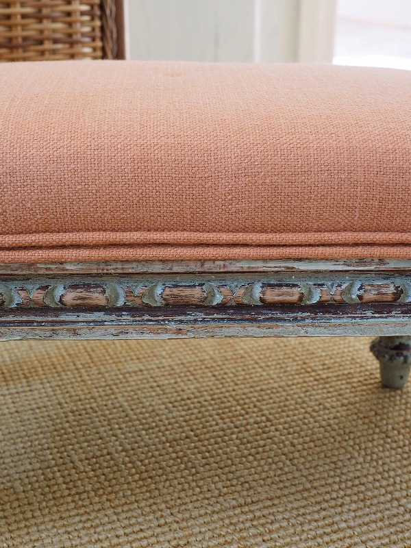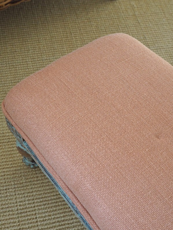 フランスのフットレストです。脚の彫のデザインや質感が大人っぽく素敵です。ファブリックの色もその雰囲気にあっていて、インテリアのポイントになるかと思います。状態もとても良く、雰囲気があります。