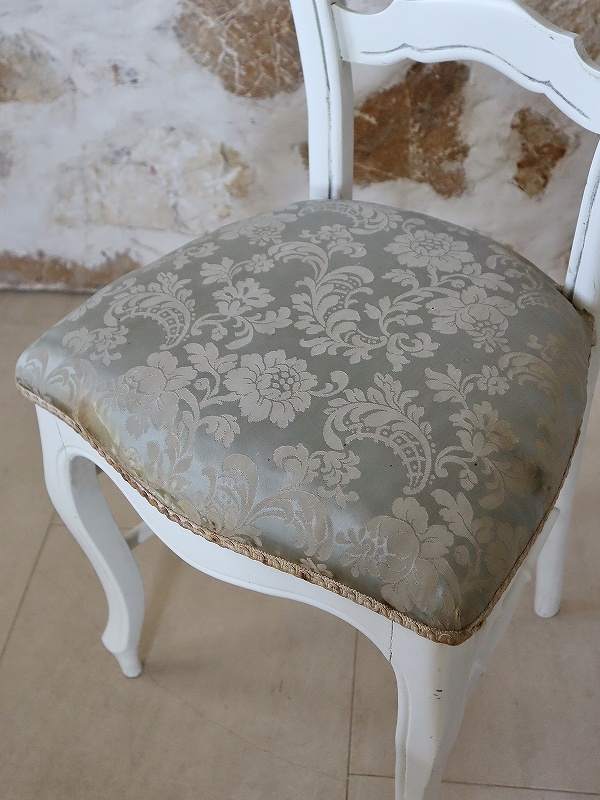 フランスのバルーンバックチェアです。猫脚や木部のオリジナル(元々の古い)ペイントがシャビーで雰囲気があり素敵です。ファブリックも比較的綺麗で、しっかりしていす。