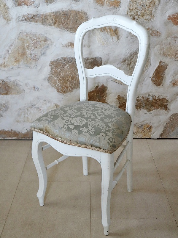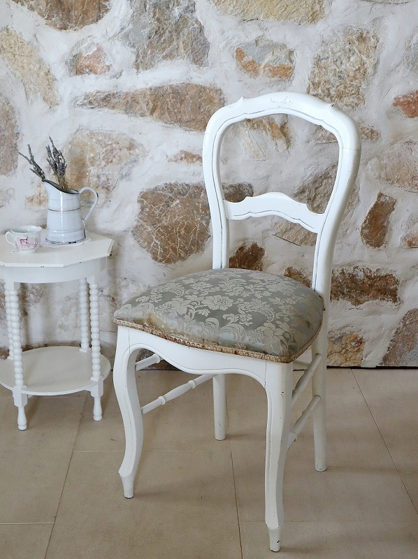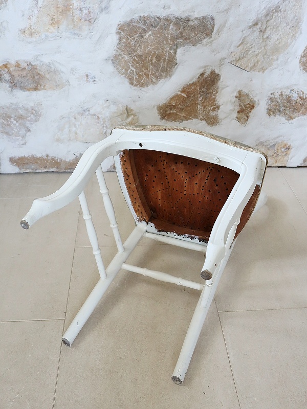 フランスシャビーなペイントが素敵なバルーンバックチェア [F25-0098]