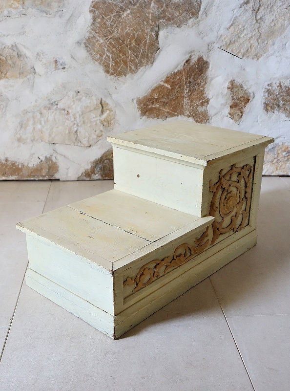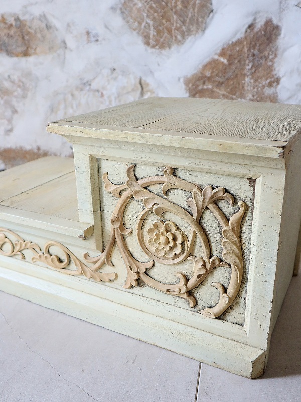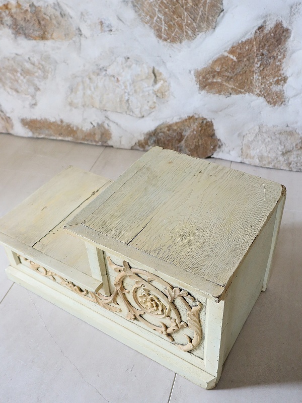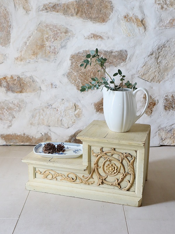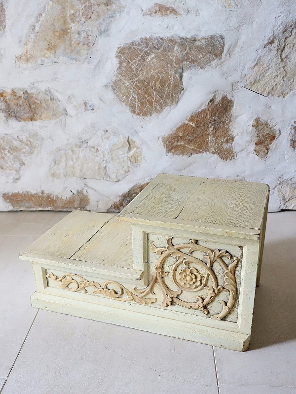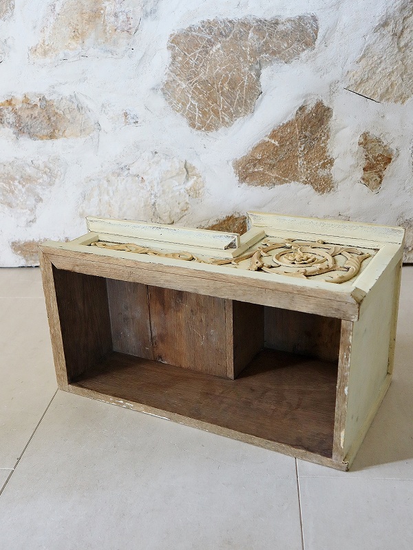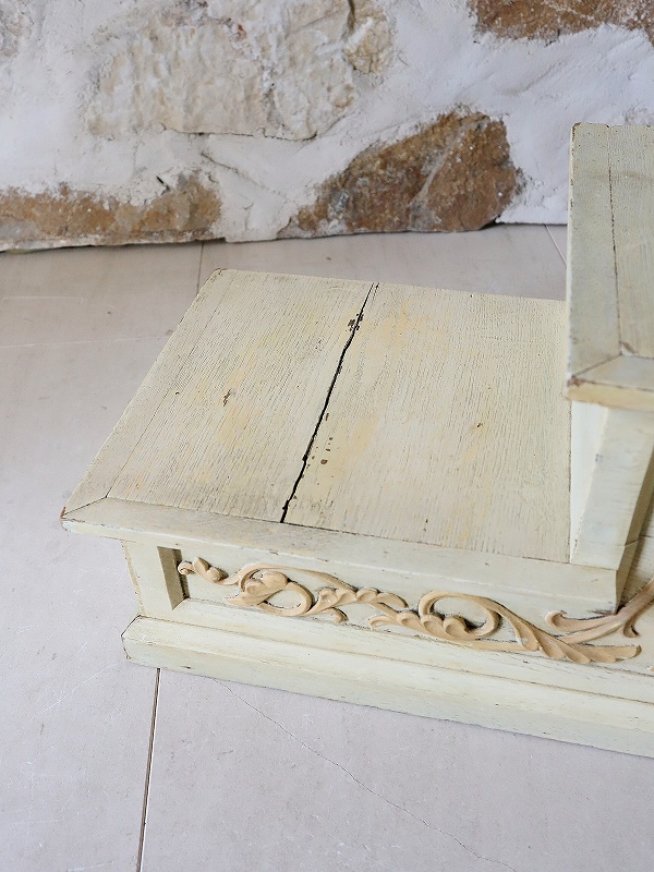 フランスのコンソールスタンドです。デザインがユニークなレアアンティークです。彫もかわいく玄関などに置いてお花などと飾っていただくと素敵です。床に置いたり、家具の上に置いたりと場所によって色々な使い方ができそうです。