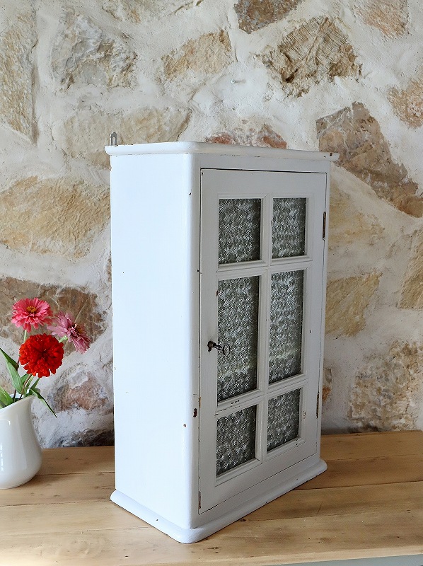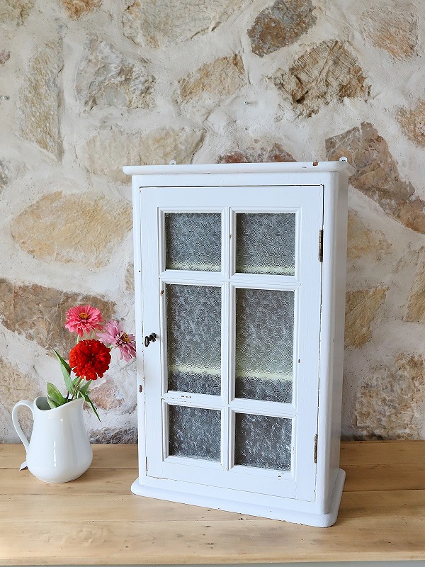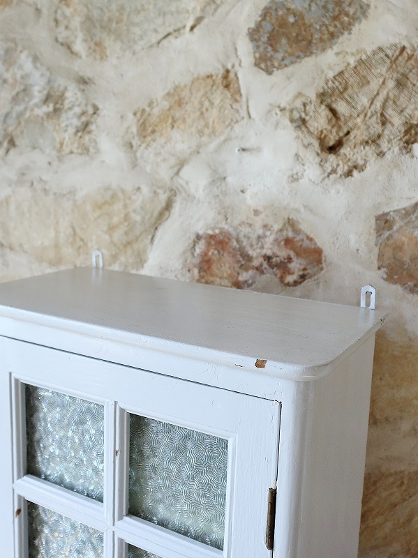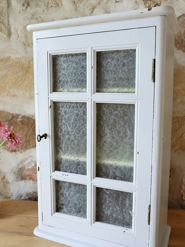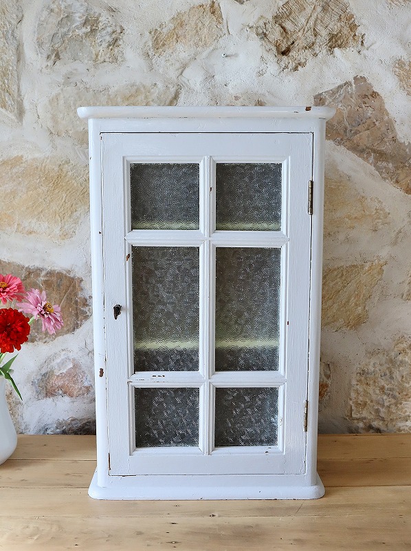 フランスガラスがかわいいウォールキャビネット [F25-0162]