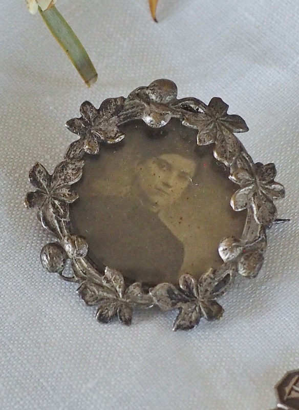 フランスの小さなブローチです。中の写真を入れ替えることができますので推しの写真をモノクロにして入れて身に付けたり、額として飾ってもかわいいです。装飾が繊細で素敵で、飾るととても小さくてかわいいです。