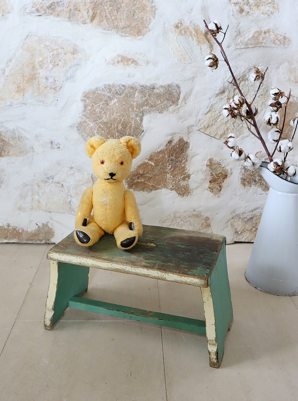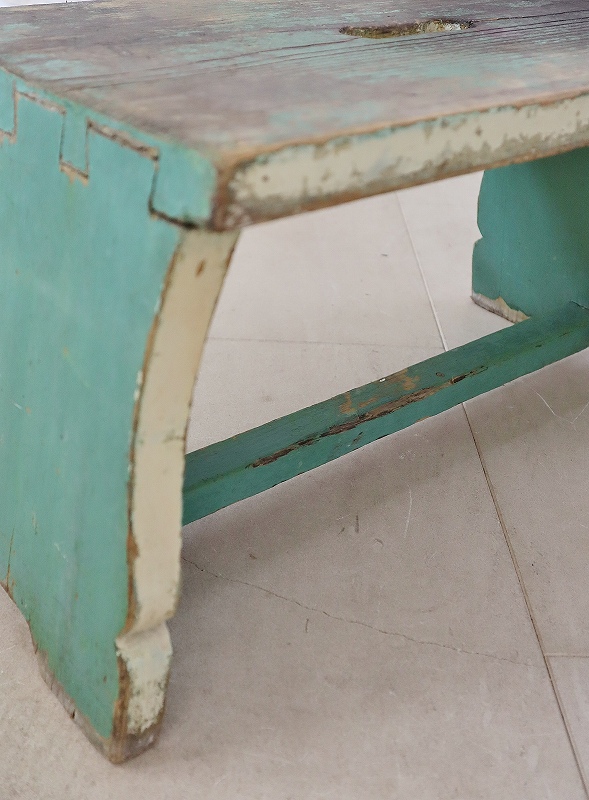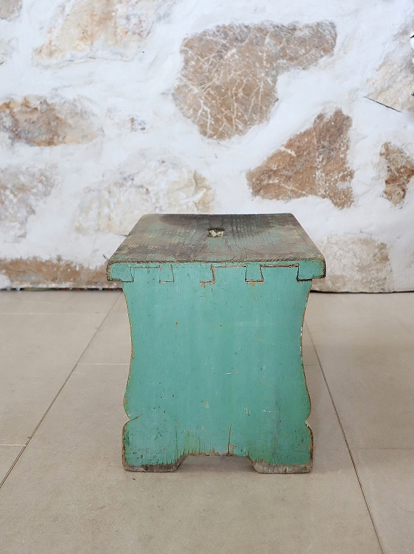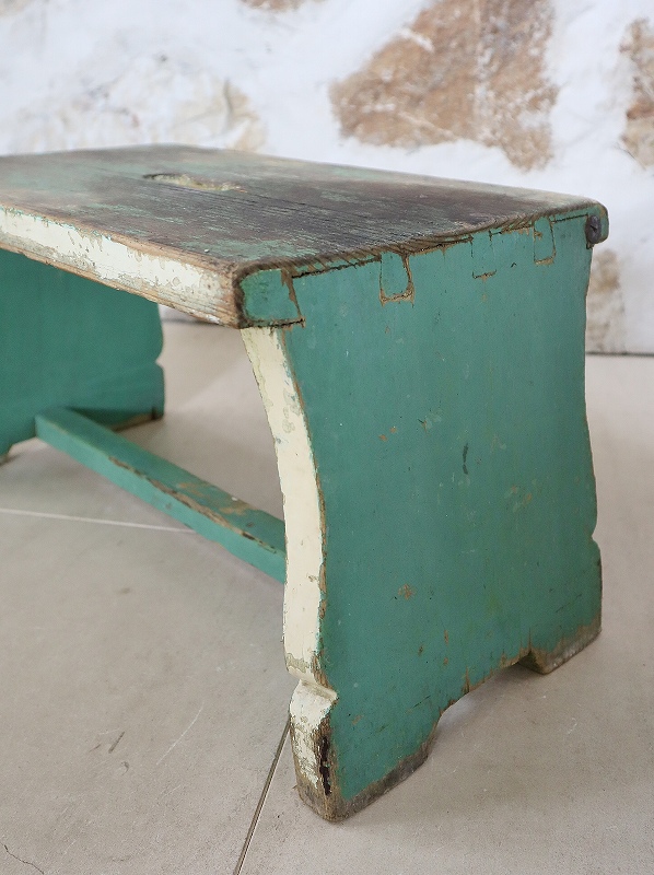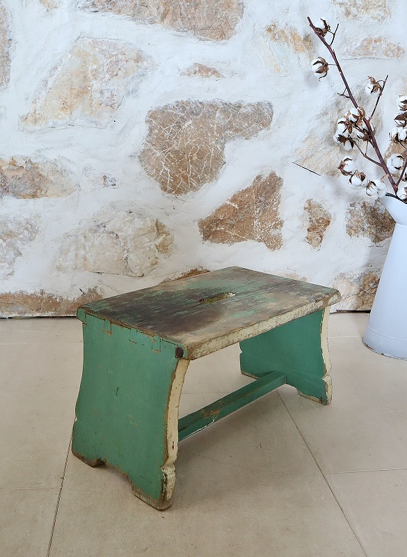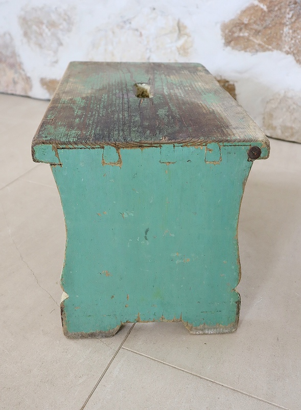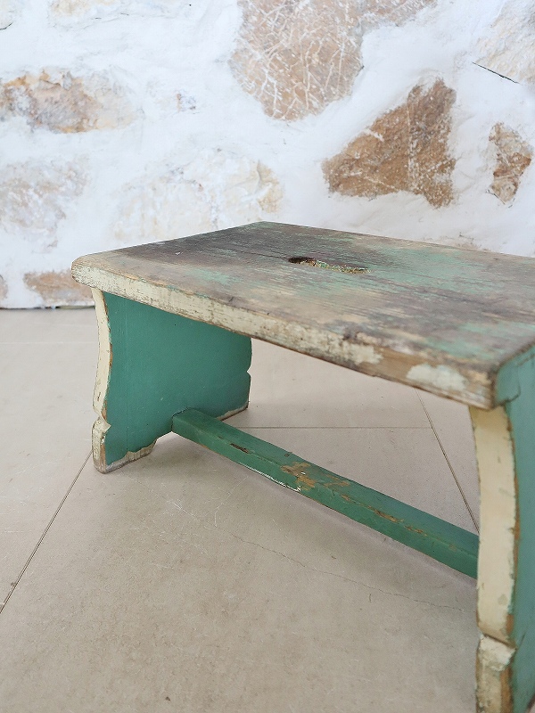 フランスで買い付けしたフットレストです。古いペイントがシャビーで、素朴な雰囲気、質感が素敵です。ヨーロッパでは人気があり、小物と一緒に使っていただいたり、重ねてディスプレイいただくと素敵です。少し大き目でしっかりしています。