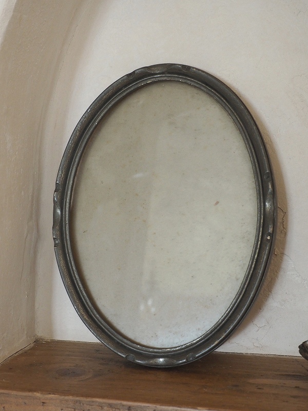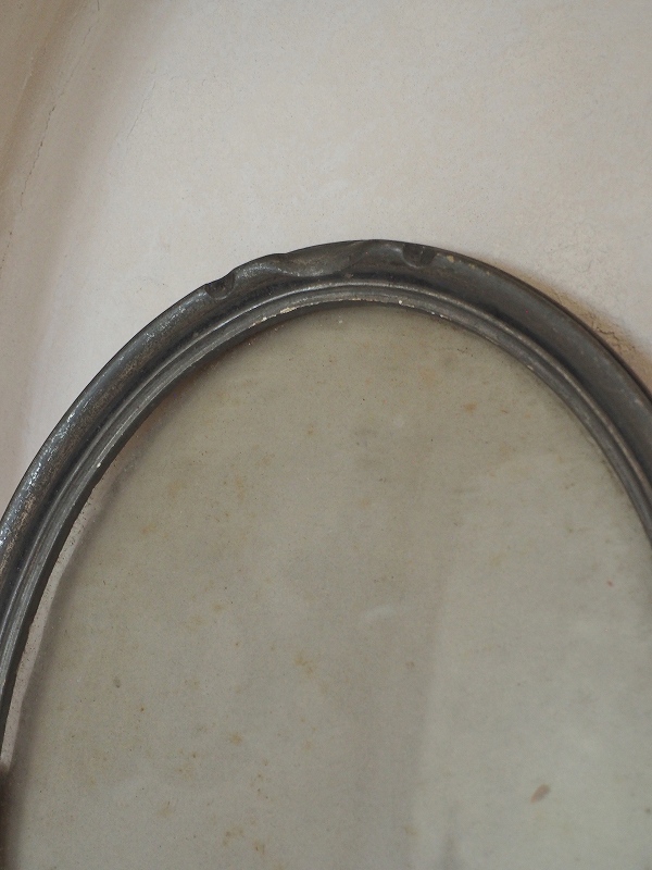 フランスの木製フレームです。ミッドセンチュリー時代の大人っぽいオーバルデザインと色が雰囲気があります。ガラスも付いていて素敵です。