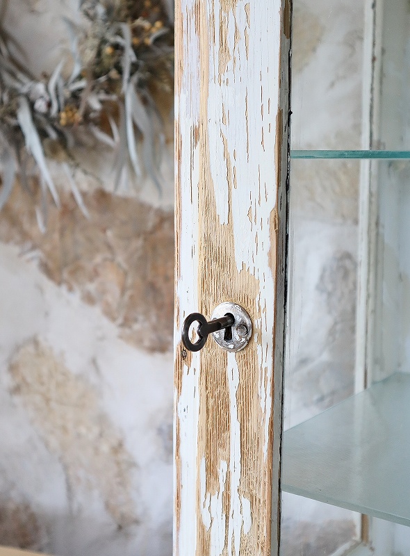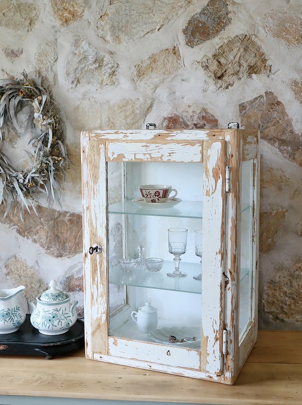 フランスシャビーなディスプレイウォールキャビネット [F25-0102]