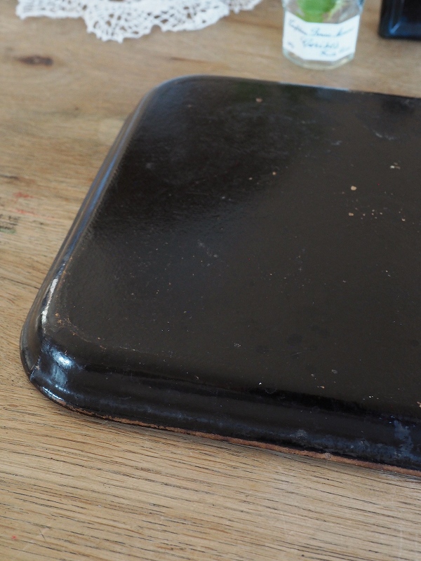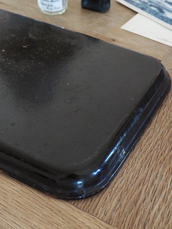 フランスのナポレオン三世様式のトレイです。圧縮紙の型紙を膠(にかわ)等で固め成形されたパピエマルシェ製で、黒のベースに小花の模様がかわいく人気のアイテムです。パピエマルシェ製のトレイとしては大き目なので、色々なことに使えそうです。