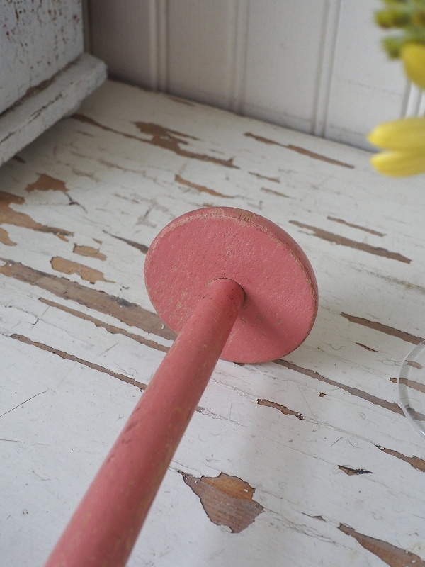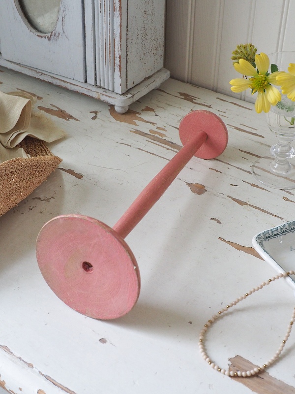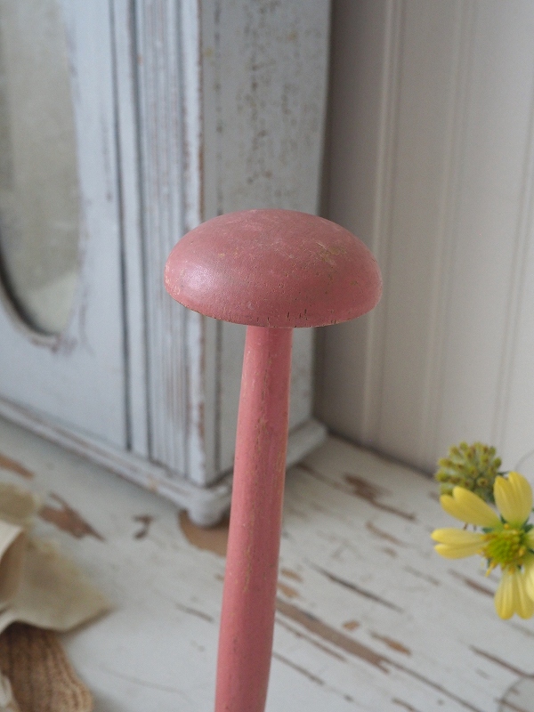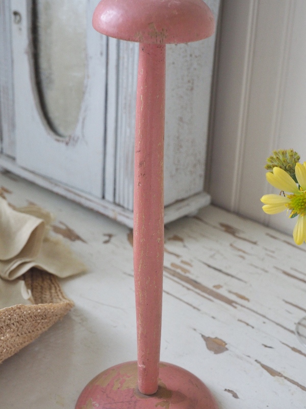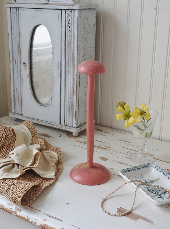 フランスの木製ハットスタンドです。落ち着いたピンクの色がかわいいです。それだけでも存在感があり、本来の帽子置きにされてもいいですが、レースやアクセサリーと合わせてディスプレイされても素敵です。