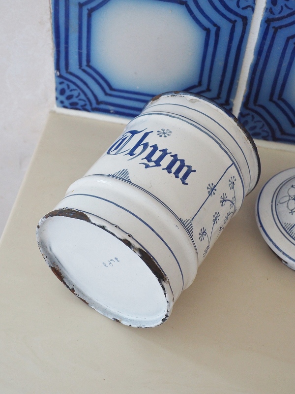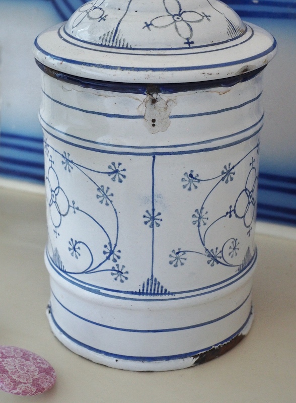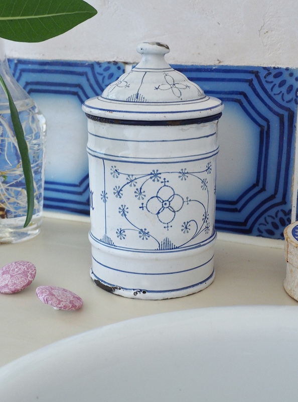 フランスサキソニー柄ホーロー製キャニスター [G25-0379]