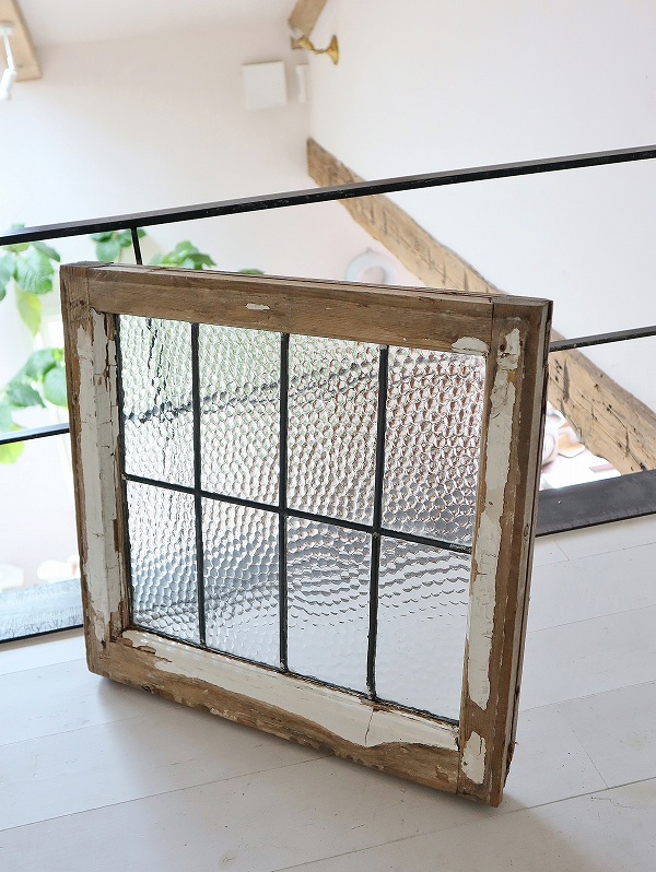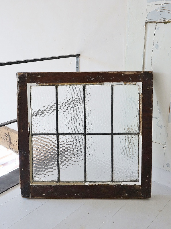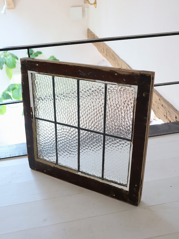 木枠も古いカラーレスのイギリスのステンドです。格子が大人っぽい素敵なステンドです。粒粒ガラスがかわいいです。リノベーションや新築ではめ込むだけでなく、飾っても素敵なステンドです。カーム(鉛)も細く特に古いもので、繊細で素敵です。