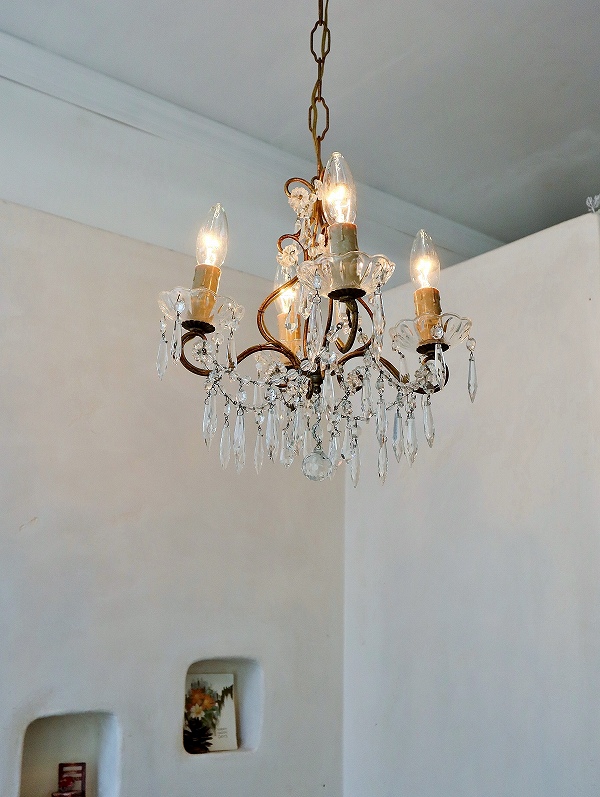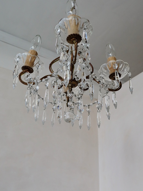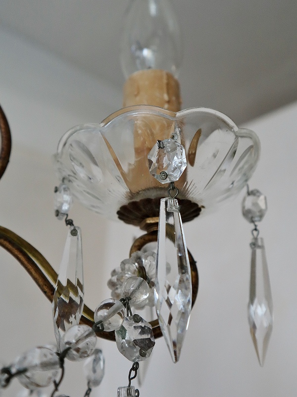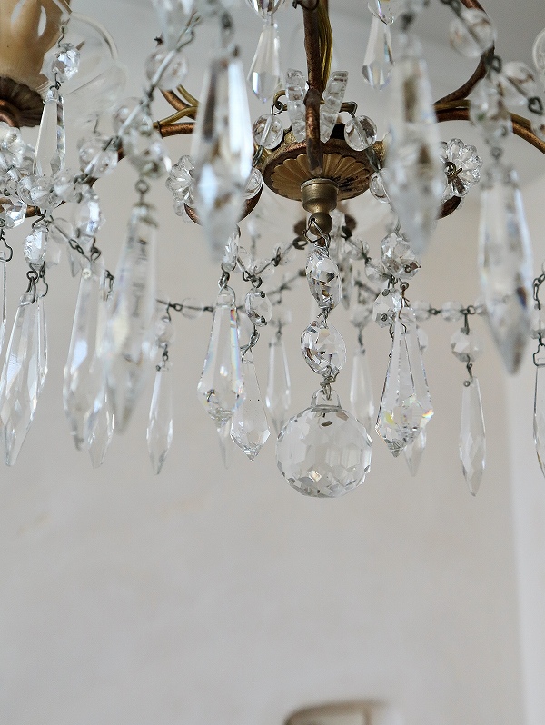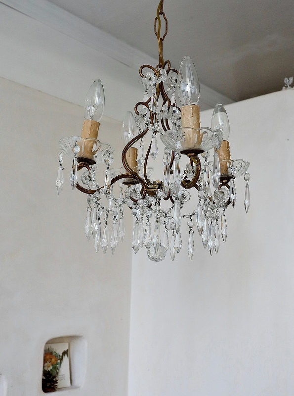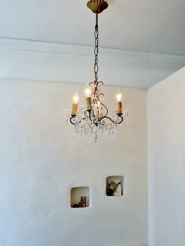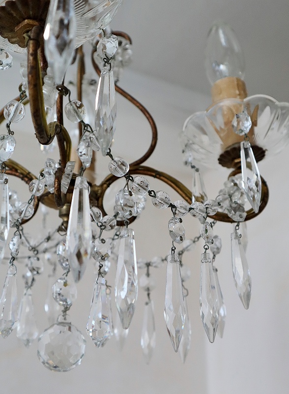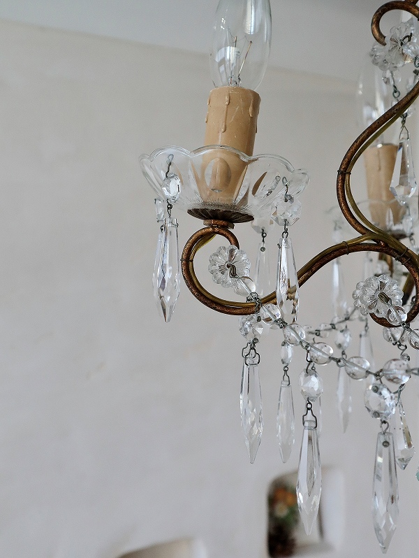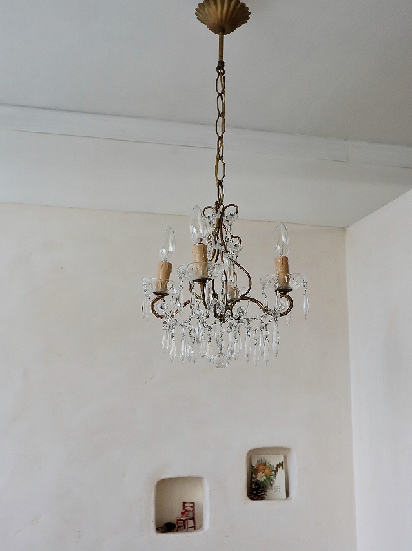 フランスガラスがかわいい4灯シャンデリア [I25-0226] フランスガラスがかわいい4灯シャンデリア [I25-0226] price: 89,900円 (税込: 98,890円) 送料サイズ: 102cm 在庫数 1点 数量: 1 返品特約に関する重要事項 お問い合わせ お気に入り登録 フランスの4灯シャンデリアです。 4灯の割には小振りで、日本のリビングダイニングには使いやすいサイズです。ガラスのパーツも小さいものがたくさん付いていて素敵なシャンデリアです。アンティークのシャンデリア独特の多少のゆがみはありますが、目立つダメージは無く、ガラスもきらきらきれいで、良い状態だと思います。ランプはフランスのE14で、サービスでお付けしますが、ホームセンターやネットでも購入できます。LEDですと、40W相当のランプの取り付けをされても大丈夫かと思います。PSE検査もしていますので、安心してご使用いただけます。電気屋さんで直接つないでいただくとカップの部分が天井にぴったり付けることができます。 サイズ W=約32.0cm D=約32.0cm H=75.0cm(チェーンL=約42.0cm含む) 重さ=約1.5kg 配送予定ランク D 予定発送方法 ゆうパック レビュー 0件のレビュー FURNITURE.1 カップボード キャビネット チェスト テーブル デスク FURNITURE.2 ウォールキャビネット シェルフ ナイトテーブル チェア スツール INTERIOR フック フレーム ミラー クロス タオルレール LIGHTS シャンデリア ペンダント テーブルスタンド ブラケット シェード PARTS ドア ウィンドウ ヴォレー ステンド アイアンゲート GOODS.1 ホーロー製品 ティン缶 アルミ製品 木製品 木箱 GOODS.2 陶磁器製品 食器 ガラス製品 キッチングッズ コーヒーミル