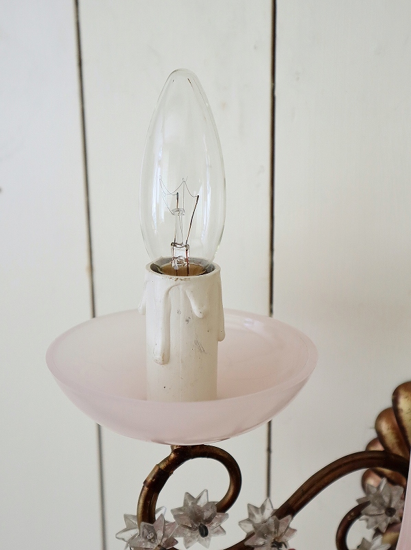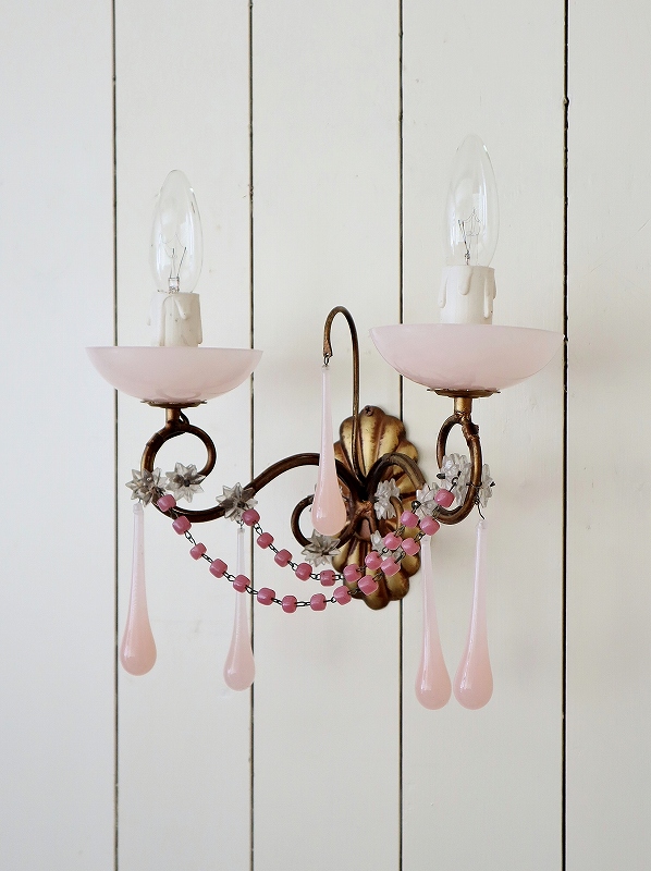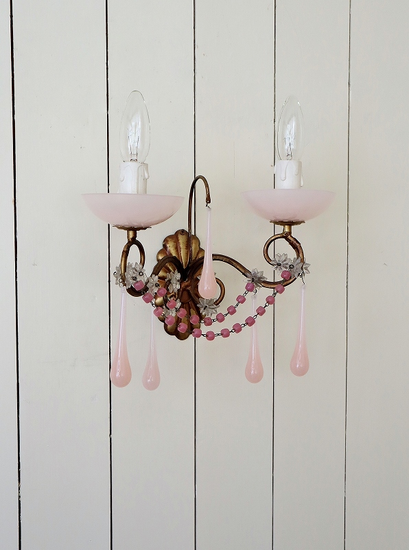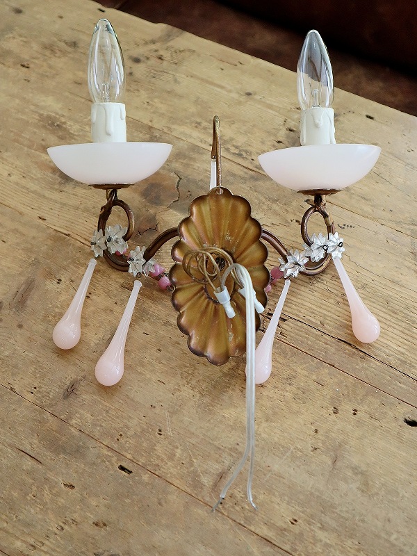 フランスオパリンガラスとビーズがかわいい2灯ウォールライト [I25-0185] フランスオパリンガラスとビーズがかわいい2灯ウォールライト [I25-0185] 送料サイズ: 81cm 在庫なし 返品特約に関する重要事項 お問い合わせ お気に入り登録 フランスの2灯ウォールライトです。ロウソクの座とティアーズドロップがピンクのオパリンガラスになっていて、真鍮のデザインやビーズと共にかわいいです。もう一つ似たものがありますが、こちらは蝋燭の筒が白の紙製です。新築工事中に取付をされる場合は直接つなぐこともできますが、壁に掛けることもできますので、ご希望があれば、新しいコンセント+中間スイッチを付けることも可能(有料)です。ランプはE14の海外球をサービスでお付けさせていただきますが、大型ホームセンターさんなどにも販売されています。PSE検査もしていますので、安心してご使用いただけます。 サイズ W=約28.0cm D=約15.0cm H=約31.0cm 配送予定ランク C 予定発送方法 ゆうパック レビュー 0件のレビュー FURNITURE.1 カップボード キャビネット チェスト テーブル デスク FURNITURE.2 ウォールキャビネット シェルフ ナイトテーブル チェア スツール INTERIOR フック フレーム ミラー クロス タオルレール LIGHTS シャンデリア ペンダント テーブルスタンド ブラケット シェード PARTS ドア ウィンドウ ヴォレー ステンド アイアンゲート GOODS.1 ホーロー製品 ティン缶 アルミ製品 木製品 木箱 GOODS.2 陶磁器製品 食器 ガラス製品 キッチングッズ コーヒーミル