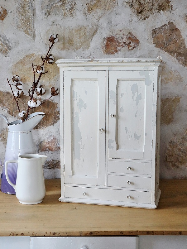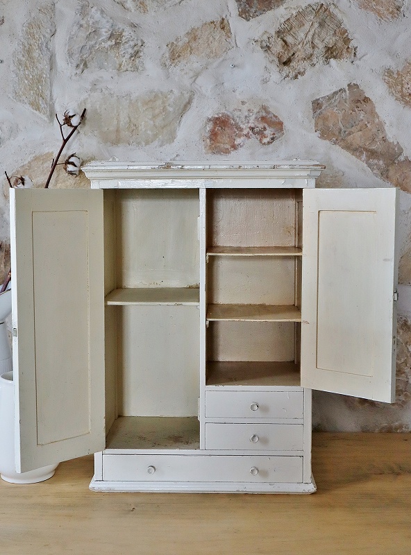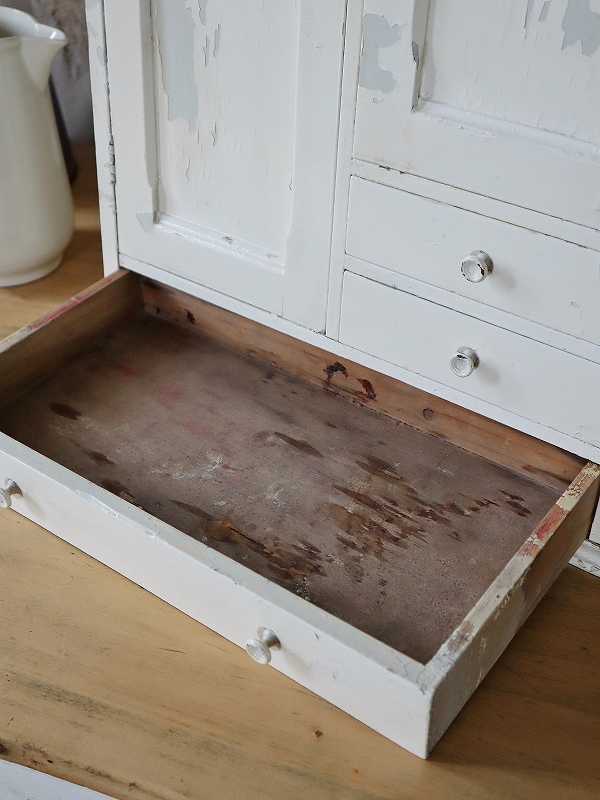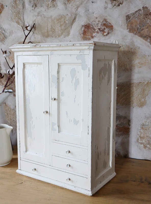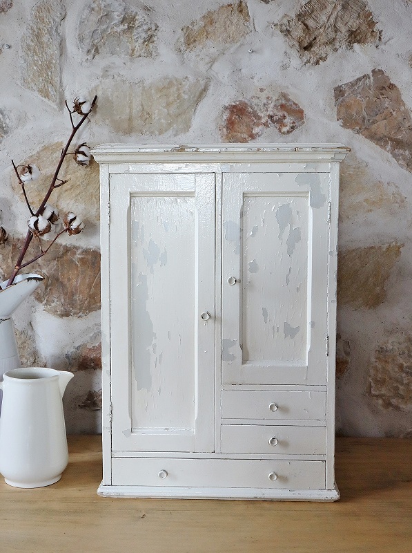 シャビーで華奢なデザインが素敵なメディスンウォールキャビネット [F25-0204] シャビーで華奢なデザインが素敵なメディスンウォールキャビネット [F25-0204] price: 50,900円 (税込: 55,990円) 送料サイズ: 133cm 在庫数 1点 数量: 1 返品特約に関する重要事項 お問い合わせ お気に入り登録 ペールブルーのオリジナル(元々の古い)ペイントがちらっと見えるシャビーなペイントがかわいいウォールキャビネットです。現在のペイントも質感があり素敵です。1900年初頭の扉のデザインや全体的に華奢な雰囲気がとてもかわいく、引き出しも小さなものが3つ付いていて、つまみも小さくかわいいです。壁掛けですが、比較的安定していますので、置いて使っていただけます。 サイズ W=約43.0cm D=約24.0cm H=約60.5cm 配送予定ランク E 予定発送方法 ゆうパック レビュー 0件のレビュー FURNITURE.1 カップボード キャビネット チェスト テーブル デスク FURNITURE.2 ウォールキャビネット シェルフ ナイトテーブル チェア スツール INTERIOR フック フレーム ミラー クロス タオルレール LIGHTS シャンデリア ペンダント テーブルスタンド ブラケット シェード PARTS ドア ウィンドウ ヴォレー ステンド アイアンゲート GOODS.1 ホーロー製品 ティン缶 アルミ製品 木製品 木箱 GOODS.2 陶磁器製品 食器 ガラス製品 キッチングッズ コーヒーミル